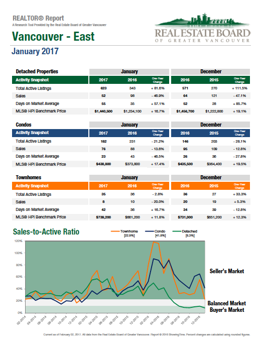 Report January 2017 East Side Vancouver Real Estate Statistics